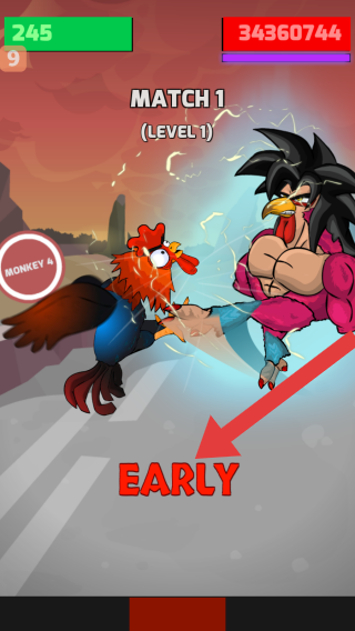 2、下注对战操控:点击屏幕开始后,先下注虚拟金额,查看双方斗鸡信息,对战开始时通过点击屏幕操控自己的斗鸡攻击对方,把握攻击时机提升胜算。