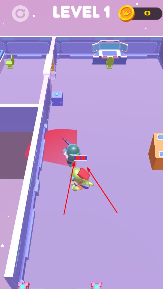 1、滑动操控角色上下左右移动,避开敌人红色视野区域,这是开启潜行的关键操作。