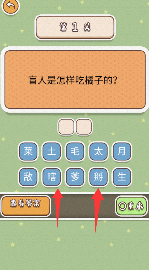 2、题目是盲人是怎样吃橘子的,答案是瞎掰。