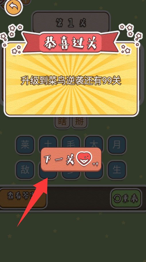 3、恭喜你过关了,点击下一关消耗1个小心心。