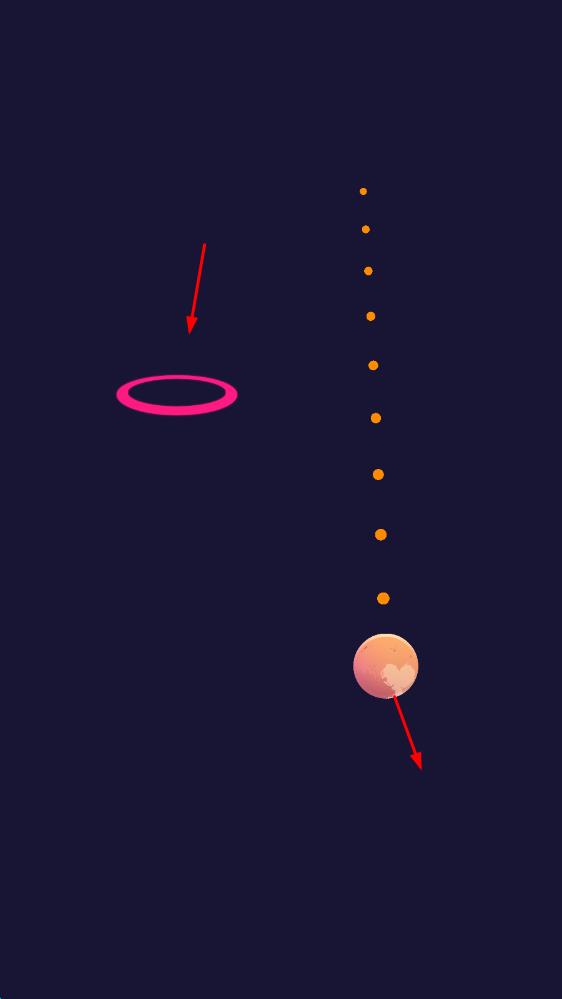 1、进入游戏后,面对漂浮的圆圈,通过简单拖动操控冥王星,找准最佳位置,将其投入圆圈中,以此获得初始分数。