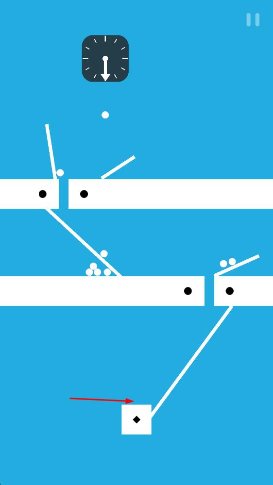 1、进入游戏后,时钟会不断掉落白色小球,此时通过滑动屏幕画出白色线条,用线条引导白球朝着白色方块的方向移动。