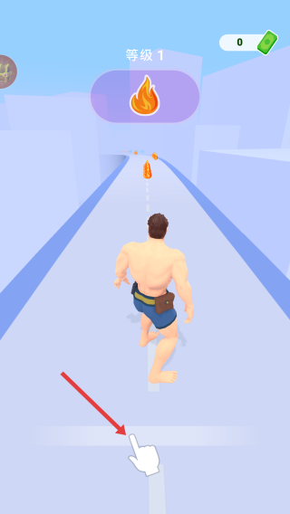 1、游戏开始时,滑动屏幕,控制角色在赛道上奔跑,收集赛道上的火焰道具,这些道具可以增强角色的能力。