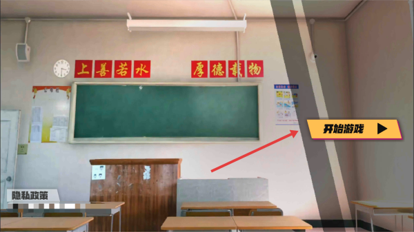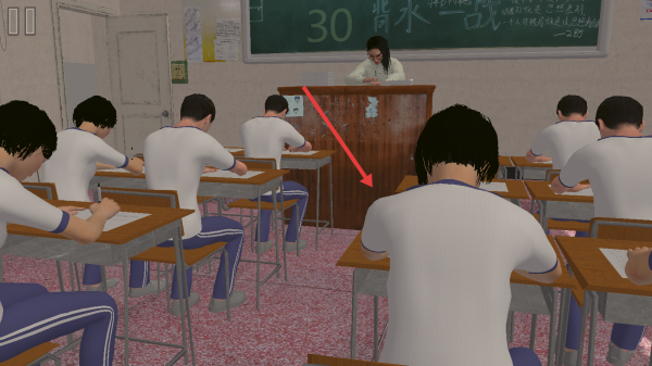1、点击开始游戏,进入教室场景,扮演学生,在考试情境中行动,注意老师与周围同学动态。