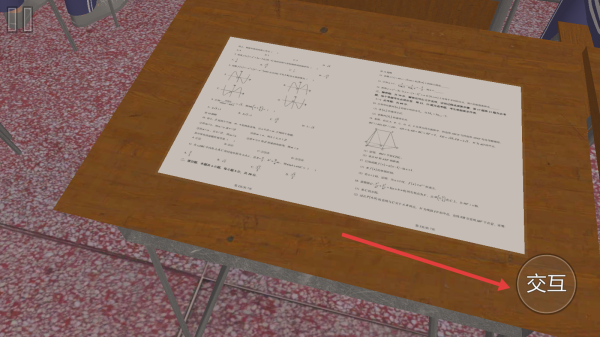 2、靠近课桌,点击交互查看试卷内容,尝试解题或触发考试相关互动,完成关卡任务。