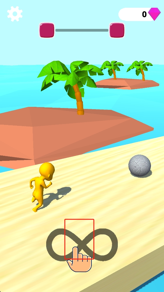 1、在开局场景,根据地面上的标识提示点击,操控黄色小人推动石球前进,注意避开障碍,收集沿途物品。