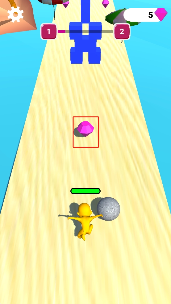 2、推动石球时,瞄准粉色钻石,规划路径让小人带石球顺利获取,同时留意上方关卡进度,应对蓝色障碍。