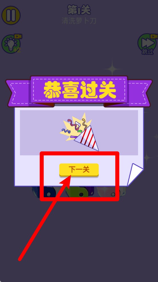 3.清洁成功通关:每完成一件物品清洗,屏幕中央将出现“恭喜过关”提示,并可点击“下一关”继续挑战。