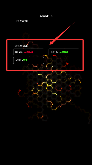 1、登录游戏后选择服务器分区,多种区域自由选择跨平台互通入口。