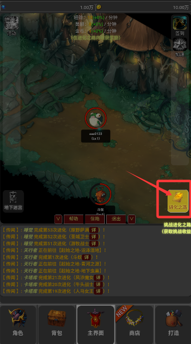 3、在主城界面点击进化之路选项,完成指定挑战赢取珍稀道具奖励。