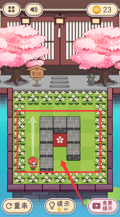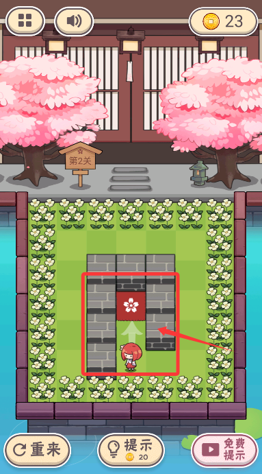 3、仔细观察地形结构,选择正确路线指引角色接近樱花标识区域。
