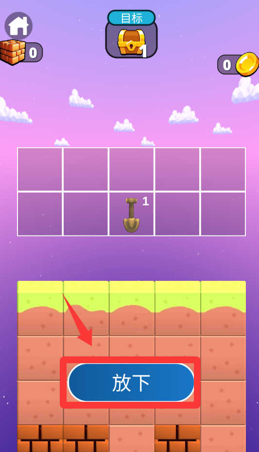 2、点击红色框框里的放下就能把挖了。