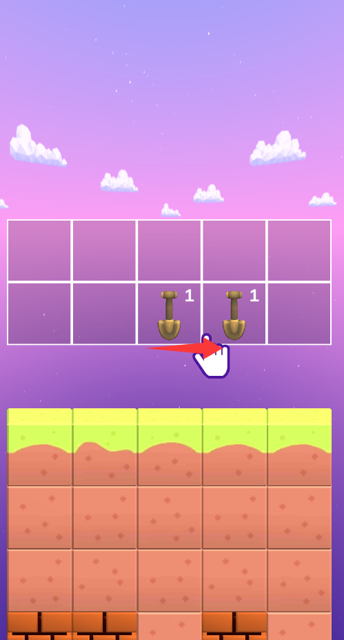 3、点击长按移动铲子合体变大铲子。