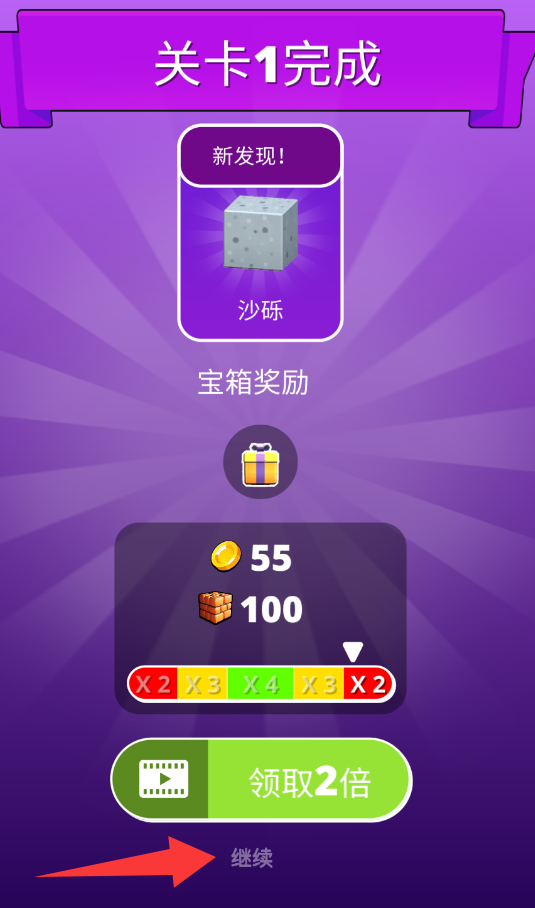 4、恭喜你过关了,点击红色箭头里的继续下一关。