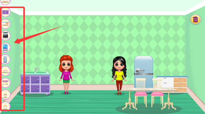 2、游戏画面分为左右两个区域,左侧、右侧是待布置的房间空间。