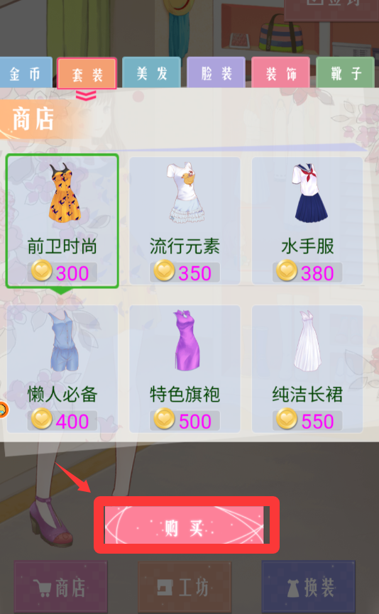 4、点击商店进去购买衣服美发还有鞋子等等。