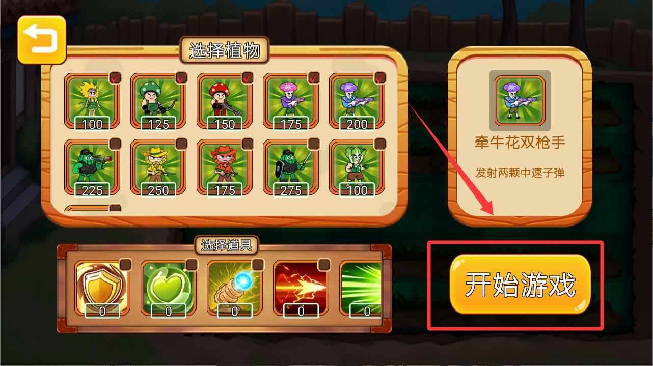 4、勾选好植物,再按右下角的开始游戏。