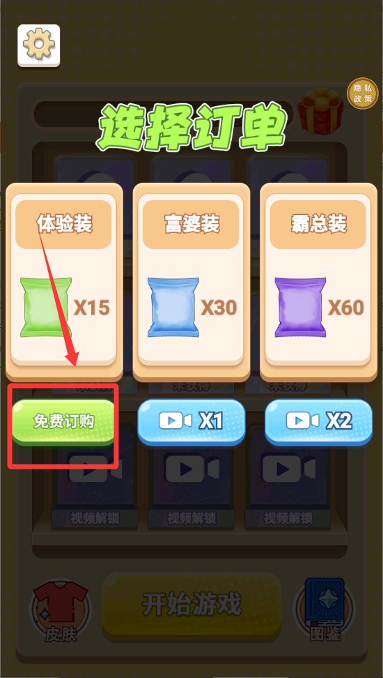 2、点击免费订购按钮准备游戏。