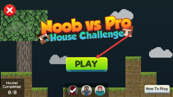 1、点击主界面绿色PLAY按钮,进入Noob-vs-Pro-House-Challenge的建房挑战模式,开启从0开始的房屋搭建竞赛。