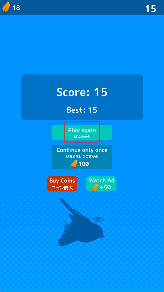 3、抵达终点后界面会显示本次跑酷的金币收集量与得分,点击绿色的按钮重新开始,争取下次打破15分的最佳成绩。