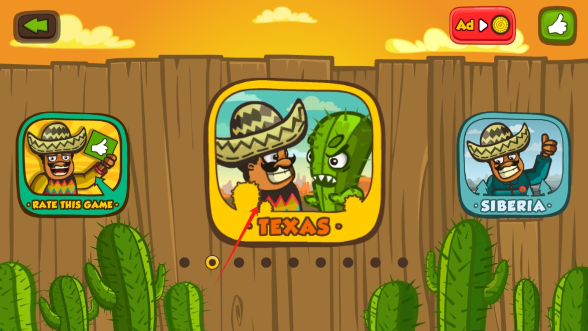 2、关卡选择,点击TEXAS关卡,进入对应场景挑战,点击按钮选择游戏中猎人的关卡。