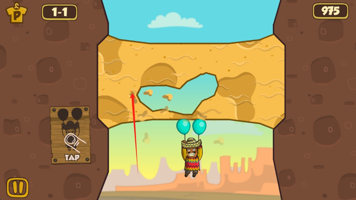 3、游戏中,利用气球控制角色移动,点击操作避开障碍,通过关卡,点击墙壁破坏掉所有部分。