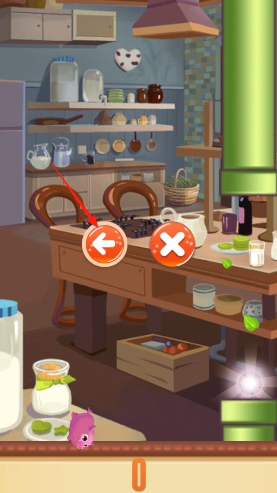 3、抓到小猪后,出现箭头和叉号按钮,点箭头按钮,能回到之前的场景继续找小猪,点叉号就退出当前抓捕,选箭头接着在厨房或其他场景,继续抓小猪集爱心,玩得更过瘾。