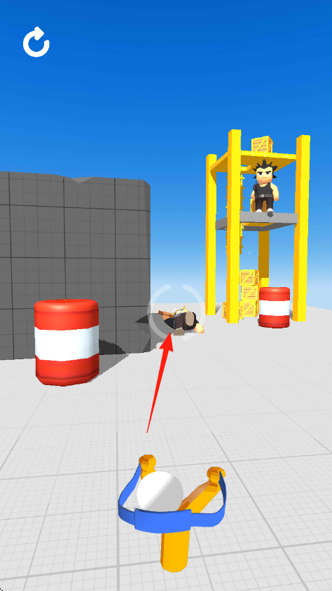 2、可以使用弹弓射击远处敌人,使其倒地,注意场景障碍,精准打击,完成阶段目标。