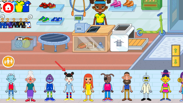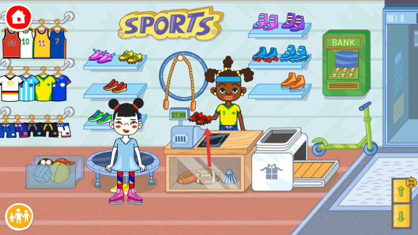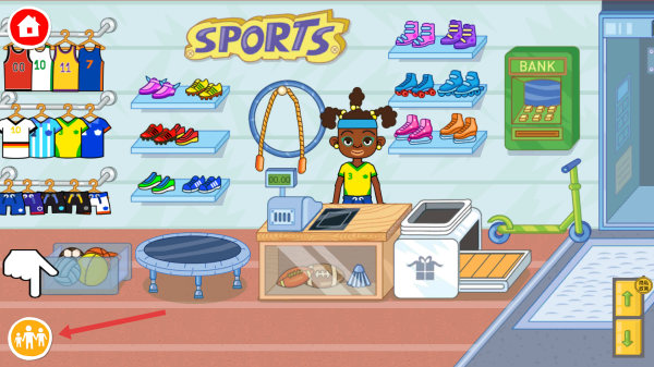 1、进入体育用品店场景,点击左下角带人物图标的按钮,唤出顾客队列,准备开展购物互动。