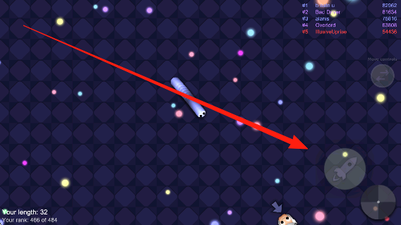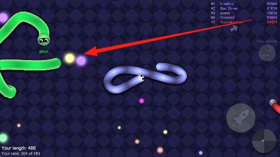 2、增长体积斗对手:战斗中,优先拾取散落在场景中的食物增长体积,待实力提升后,主动寻找并吃掉体积较小的蛇以淘汰对手,同时警惕体积更大的对手,避免被吞噬。
