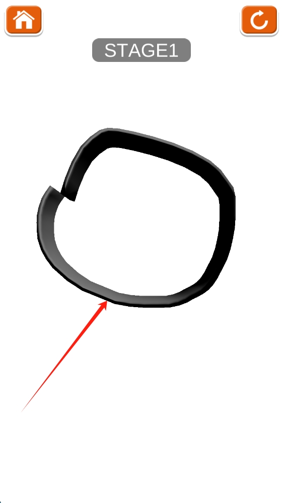 2、进入关卡后,拼接红色箭头指向的黑色环形物件,完成当前阶段目标,点击画圈落下物体。