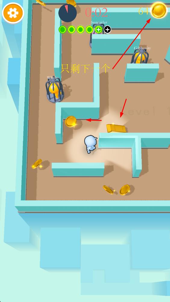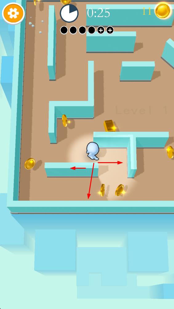 1、进入迷宫场景后,操控角色沿通道移动,收集沿途金币,留意时间限制。