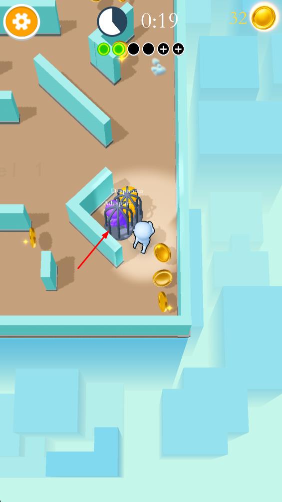 2、在迷宫角落发现牢笼,靠近并解锁,解救被困目标,推动关卡进程。