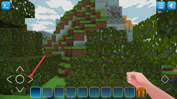 1、用虚拟摇杆进行移动,探索草地、山坡场景,靠近树木、矿石如草地下资源,点击图标采集。