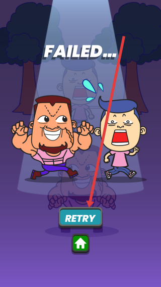 3、挑战失败出现FAILED...界面时,点击RETRY按钮,重新开始游戏,调整策略,再次尝试帮助角色成功逃生。