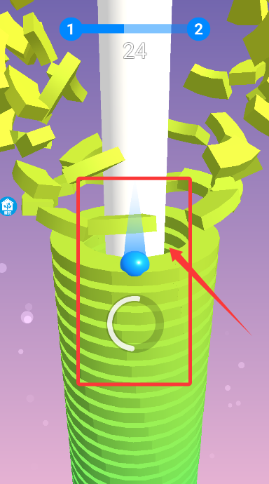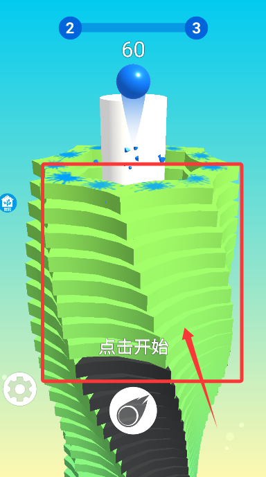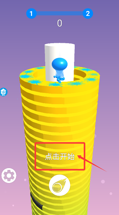1、启动游戏轻触开始键,将操控蓝色小球从黄色积木顶端自由坠落。