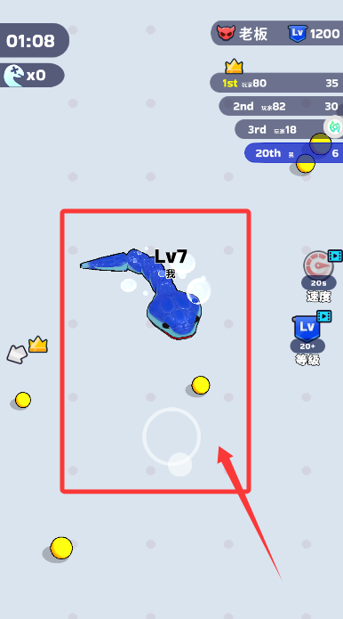 2、沿途吞食能量豆快速成长,实时榜单则会显示当前对战的排名。