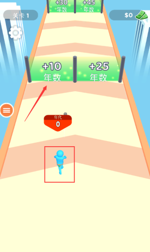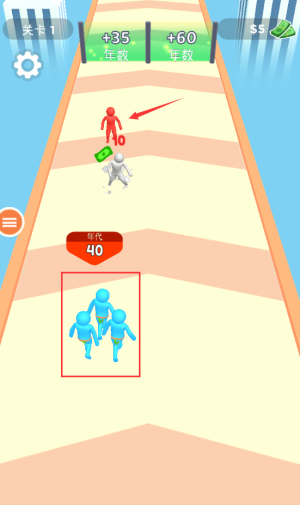 2、操控小人触碰红框+10年数,增加游戏时间。