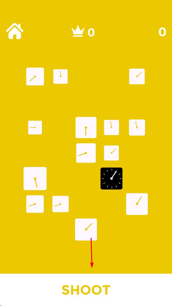 2、游戏过程中,根据环绕时钟的移动规律,在时针旋转至最佳角度时发射指针,利用不同时钟的特殊效果助力消除,推进关卡。
