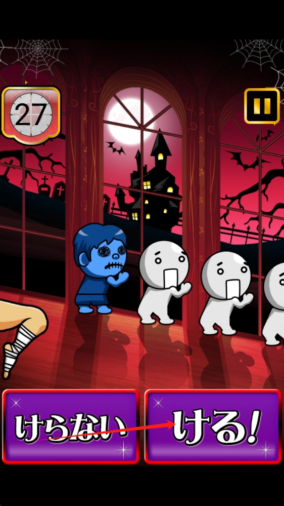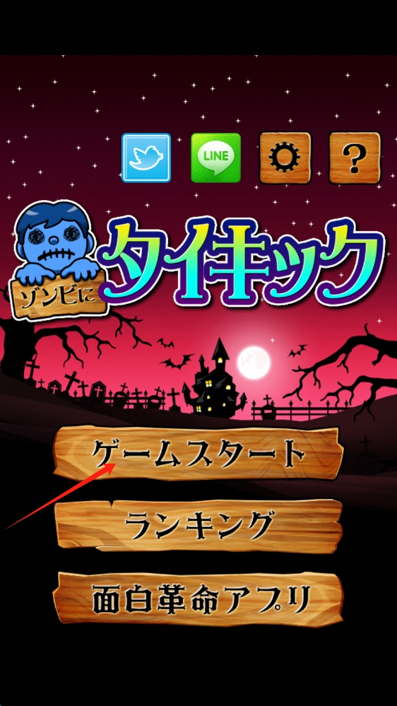 1、主界面,点击ゲームスタート,开启僵尸踢飞挑战,点击按钮开始当前的游戏页面。
