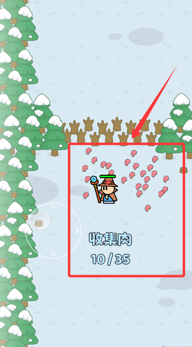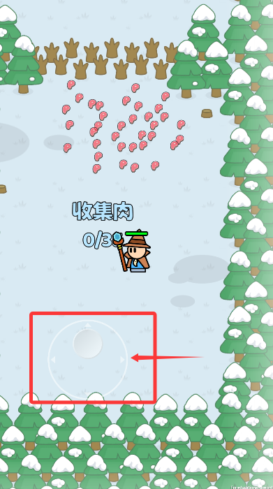 2、操作角色在冰雪场景中移动,拾取散落的肉块增加资源储备。