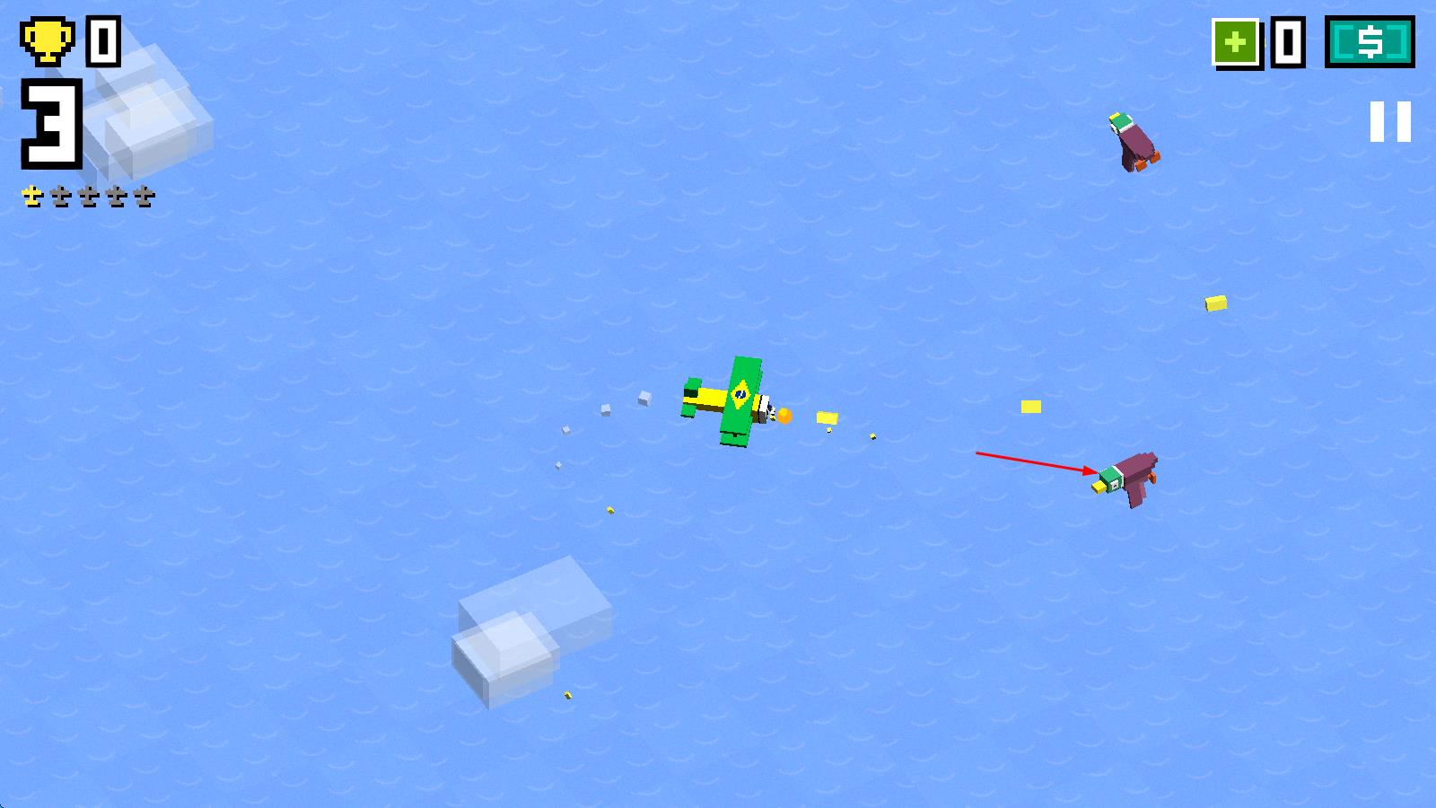 2、自动射击歼敌:飞机的自动瞄准射击敌机,专注躲避即可,击落目标后收集爆出的钱与道具,强化生存能力与攻击效率。