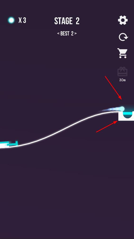 3、推进至STAGE2,延续发射策略,让小球精准落入右侧目标区域。