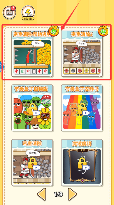 2、进入关卡选择界面,挑战"密室消除"等新模式开启营救任务。