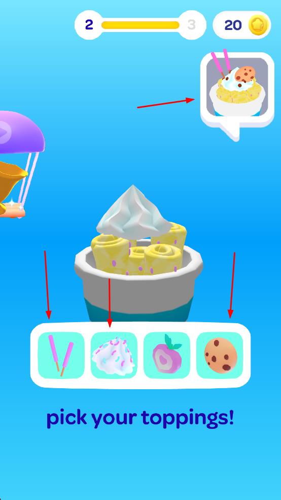 2、简单操作完成挑战:整体环境氛围中,玩家通过简单操作方式完成各种趣味关卡挑战,制作出惊人的冰淇淋,即使新手也能快速上手,在轻松操作中应对不同关卡的制作要求。