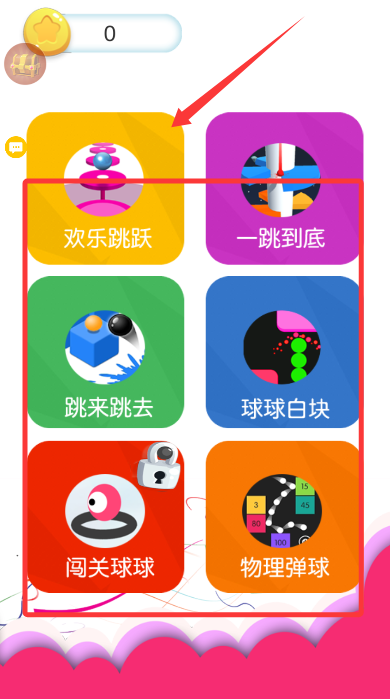 1、在游戏模式选择界面,点击"欢乐跳跃"进入球球跳跃挑战。