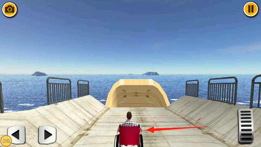1、操控轮椅,按箭头方向,从坡道滑下,进管道,注意平衡,沿轨道前行,别翻车,推进关卡。