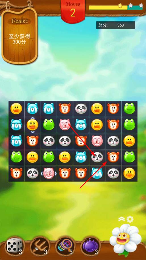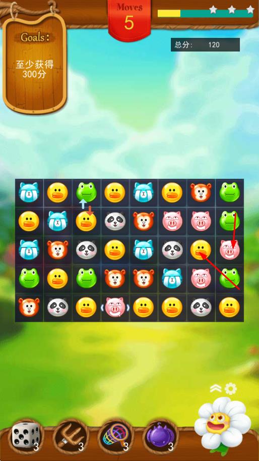 3、目标聚焦方法:根据关卡目标优先消除指定宠物类型,忽略无关元素节省步数,确保在限定步数内达成消除数量或分数要求。
