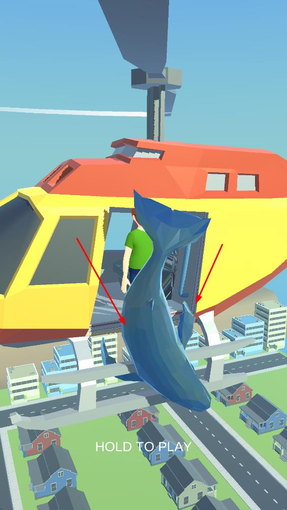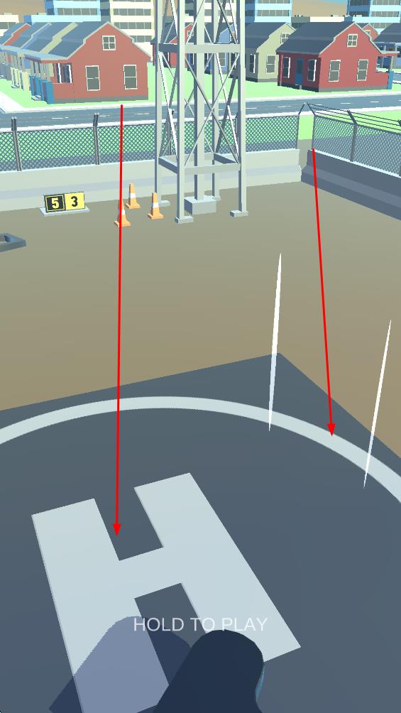 1、在直升机界面,按住屏幕开启投放,控制物体下落。