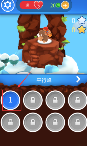 3、选择红框数字1关卡,开始平行峰第一关挑战。